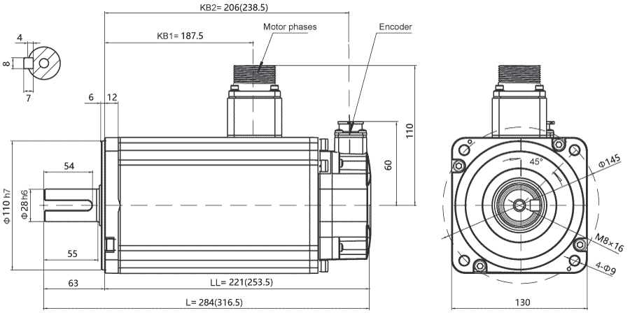 The output power of 5000 W fits into a servo motor EM3A-50 with a flange size 130 mm. This motor has low rotor inertia and high speed, suitable for highly dynamic systems. Movement accuracy is ensured by modern optical or magnetic encoders with a resolution of up to 23-bit.